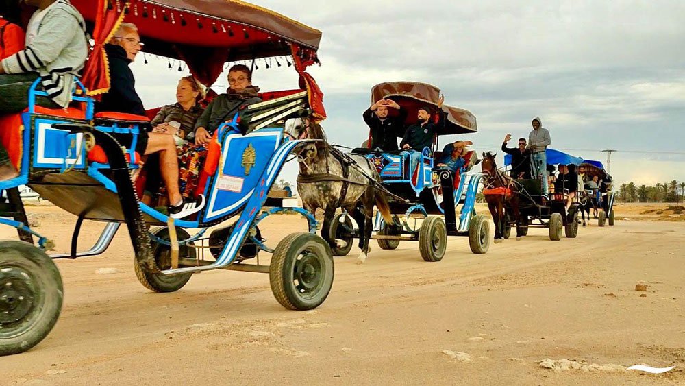 Traversez les ruelles paisibles, les palmeraies et les villages traditionnels de l’île à bord d’une calèche typique. Un moment de détente et de découverte, idéal pour les familles, les couples ou les groupes souhaitant explorer Djerba autrement, dans une ambiance conviviale et locale.